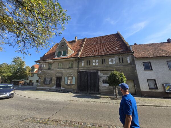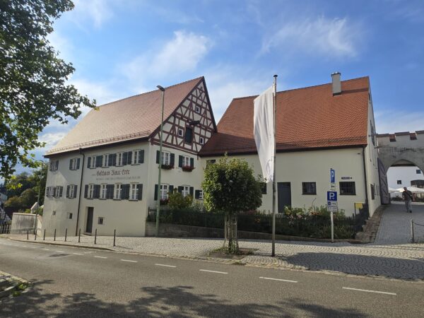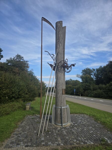 In Leipheim we went to the ‘Bauernkriegsmuseum’ with very restrictive opening times of three hours a week. This exhibition concentrated on explaining the twelve articles of Memmingen and the first battle of the war at Leipheim. We walked around the town a bit and cycled to the memorial for the battle.